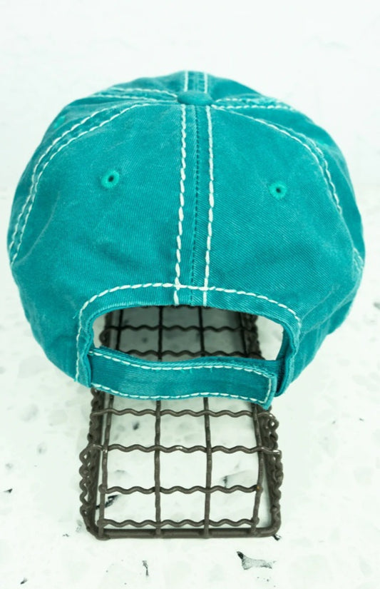 Distressed Turquiose Blossoming Sugar Skull Cap