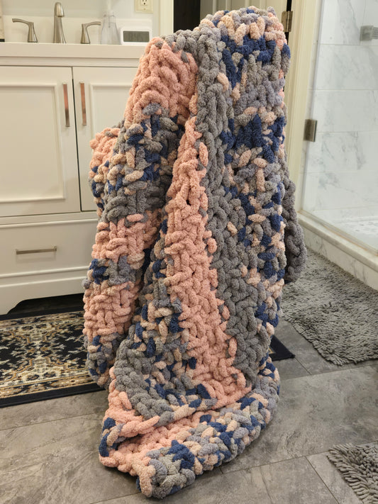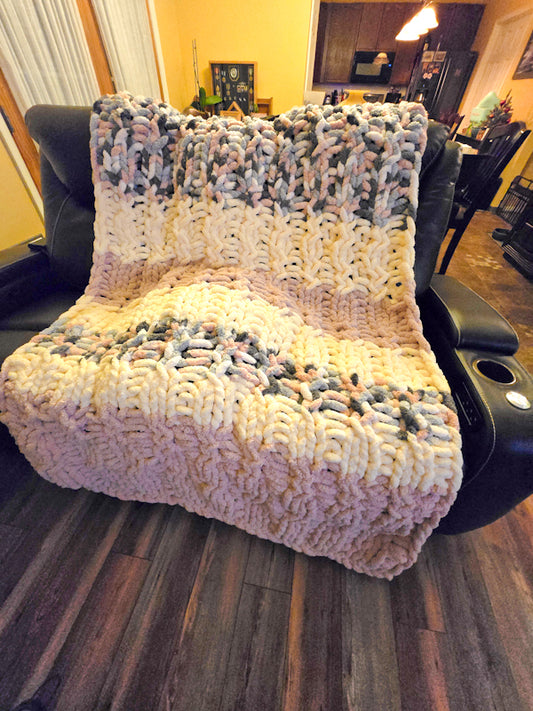Chunky Knit Blanket Tranquil Trio Soft Pinks & Purples