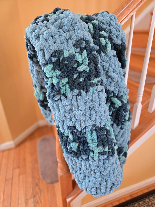 Teal Dreams 2 Hand Knit Chunky Blanket