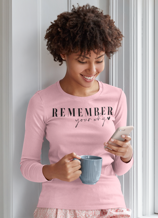 Remember Your Why Regular & Plus Long or Short Sleeve Graphic Tee White Lettering