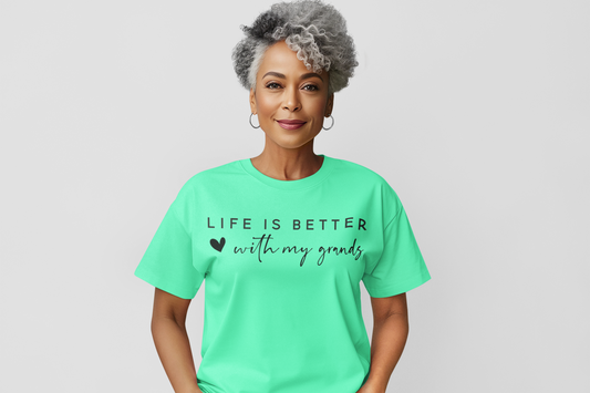 Life is Better With My Grands Regular & Plus Long or Short Sleeve Graphic Tee with White Lettering
