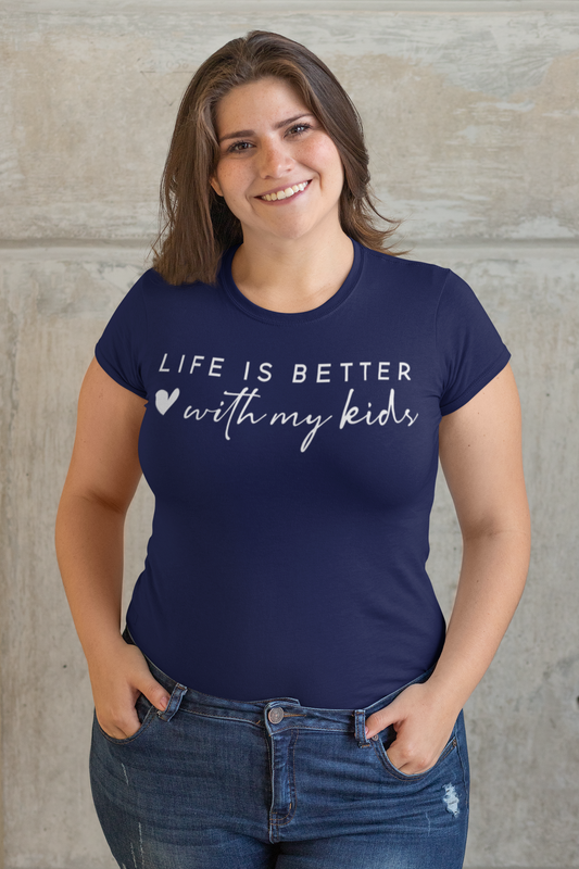 Life is Better With My Kids Regular & Plus Long or Short Sleeve Graphic Tee with White Lettering