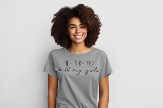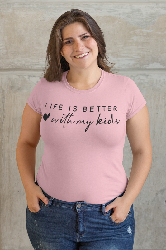 Life is Better With My Kids Regular & Plus Long or Short Sleeve Graphic Tee with Black Lettering