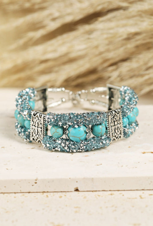 Green Western Turquoise Beads Rhinestone Carved Bracelet