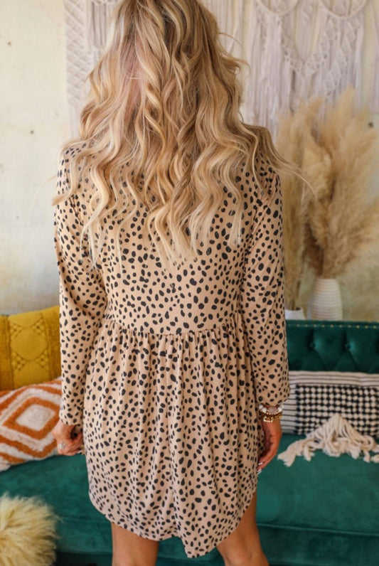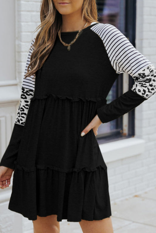 Black Striped Leopard Patchwork Long Sleeve Dress