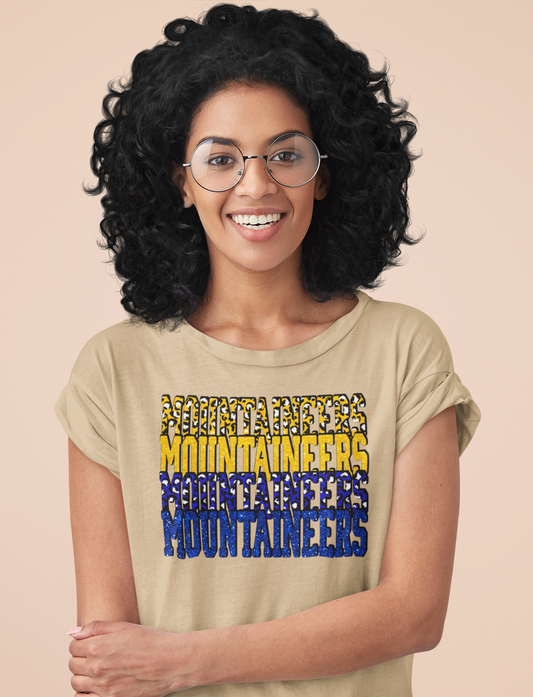 Mountain Mama Leopard Regular & Plus Glitter Long or Short Sleeve Graphic Tee