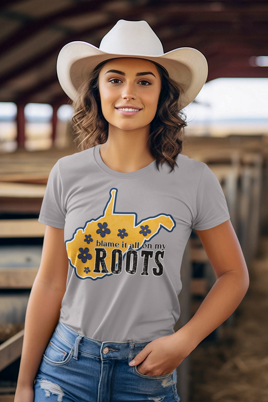 WV Blame it all on my Roots Regular & Plus Graphic Long or Short Sleeve Tee