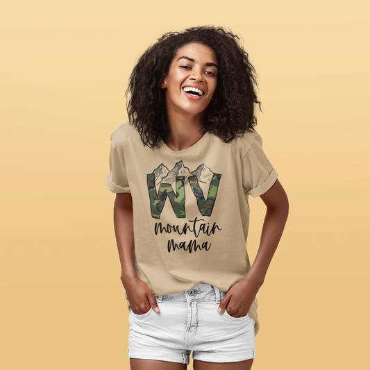 WV Mountain Mama Camo Regular & Plus Graphic Long & Short Sleeve Tee