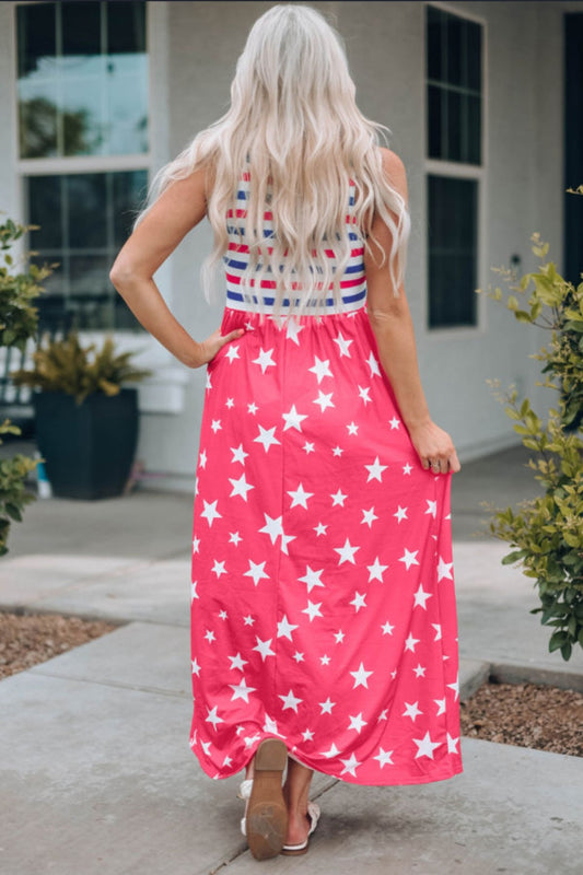 Red Stars & Stripes Maxi Dress with Pockets