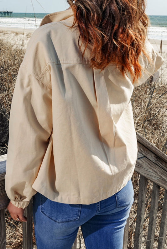 Beige Floral Patchwork Light, Loose Fit Jacket with Pockets