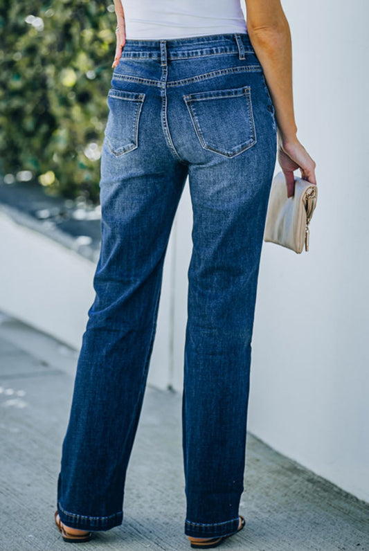 Kancan High Waist Chewed Up Straight Mom Jeans